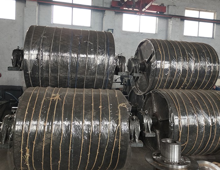 II型傳動滾筒從制作材料上來分有鋼板卷制焊接、鑄鋼及鑄鐵3種。從結(jié)構(gòu)型式上來分有裝配輻板式、輻條式、整體輻板式3種。另外,滾筒表面也有光面、包膠、鑄膠等型式;其中,以鋼板焊接裝配輻板式鑄膠滾筒應(yīng)用廣泛。